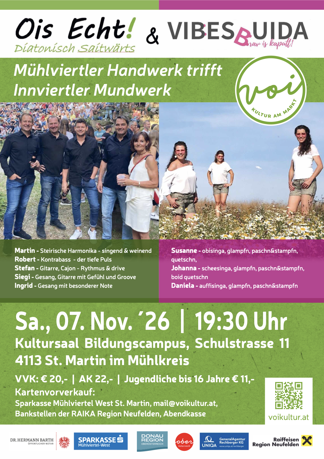 Wo: Kultursaal Bildungscampus, Schulstrasse 11, 4113 St. Martin im Mühlkreis